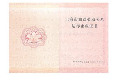 2019年上海市和谐劳动关系达标企业证书
