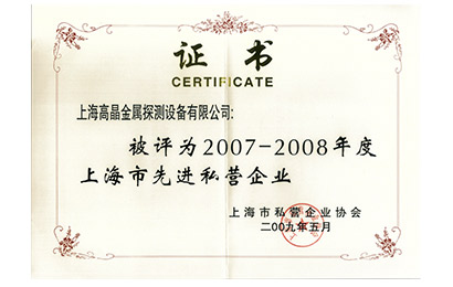 2009年上海市先进私营企业证书