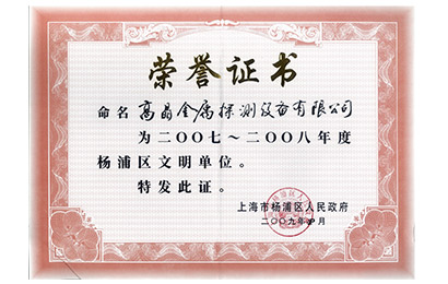2009年杨浦区文明单位证书