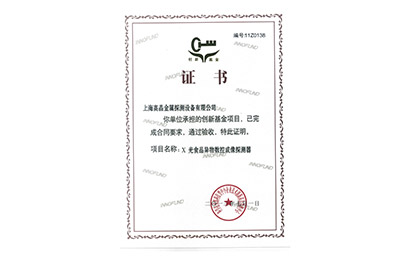 2013年创新基金验收证书-X光食品异物数控成像探测器