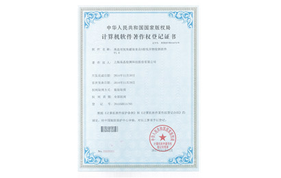 2015年软件著作权登记证书-高晶双视角罐装食品X射线异物检测软件V1.0